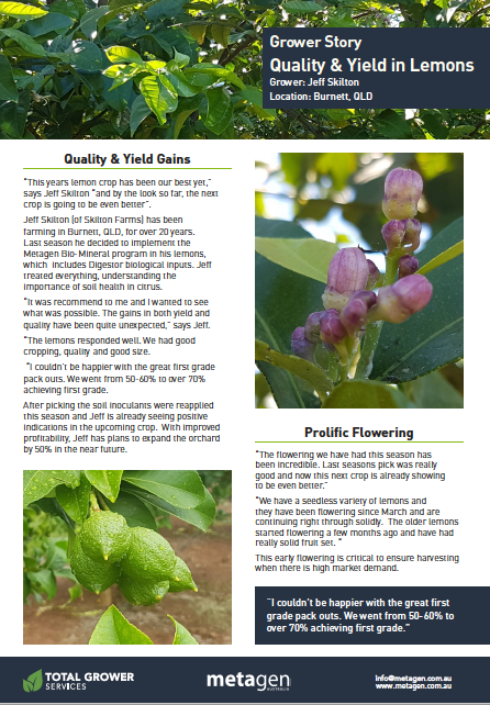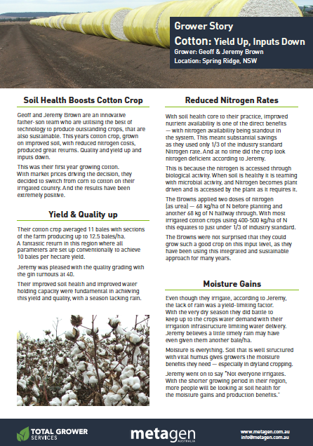 Case Studies Metagen Case Studies Contact us for crop specific case studies from our library. Sign Up for our monthly Soil Health NewsletterClick here to get the monthly lab updates, latest breakthroughs, microbial knowledge, grower results and productivity strategies. Sign Up for FREE